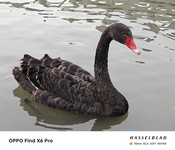 (圖:黑天鵝的紅喙和羽毛,OPPO Find X6 Pro隨手拍,色彩逼真、細節十分清晰,栩栩如生,不遜微單相機。)