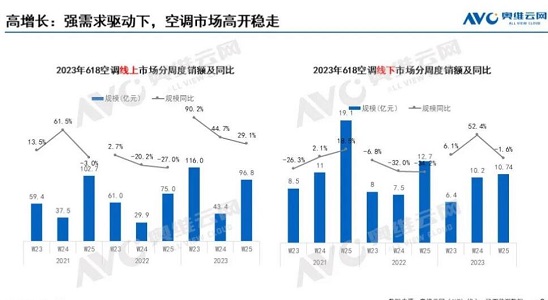 導(dǎo)讀:  家電消費(fèi)網(wǎng)6月25日訊 昨天,大數(shù)據(jù)公司奧維云網(wǎng)(AVC)發(fā)布的618商戰(zhàn)推總數(shù)據(jù)顯示,2023年618期間空調(diào)全渠道零售量1195萬臺(tái),同比增長(zhǎng)35 9%,銷售額411億元,同比增長(zhǎng)38 0%。對(duì)此,奧維云網(wǎng)分析師認(rèn)為,從前幾