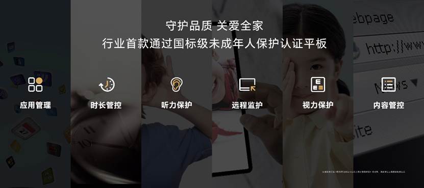 榮耀平板X8 Pro是行業首款通過國標級未成年人保護認證的平板。這款平板為未成年人提供近端保護和遠程守護兩種模式,包含應用管理,時長管控,聽力保護,視力保護,內容管控等多種功能,能夠幫助孩子健康使用平板,讓孩子學習更用心,也讓家長更放心。