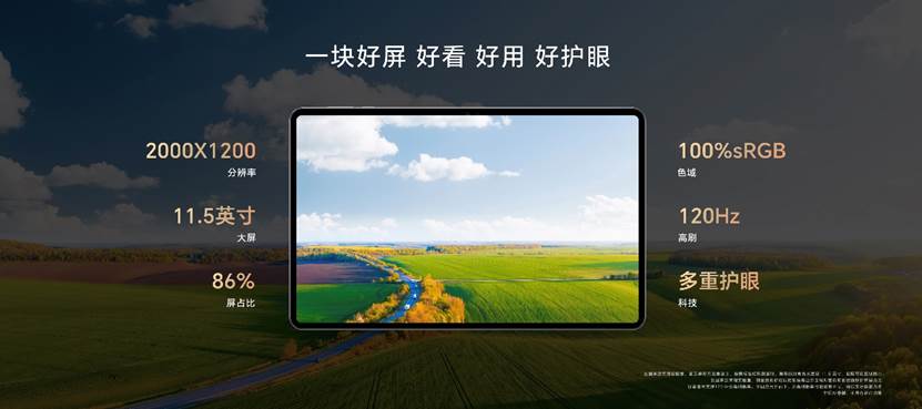 11.5英寸超大屏幕,屏占比達到86%,支持2000x1200像素的分辨率和10.7億色彩顯示,能夠展現逼真的色彩和令人驚嘆的細節,不論看劇,還是網課閱讀,都能帶來更佳的觀感體驗。榮耀平板X8 Pro還具備高達120Hz的可調節刷新率,為用戶帶來順滑流暢的視覺效果和更節能的體驗。該平板更秉承了榮耀的護眼傳統,不僅支持萊茵硬件級低藍光,萊茵無頻閃認證以及國家眼科工程中心護眼認證,還擁有類自然光護眼和助眠顯示兩項護眼黑科技,避免對用戶的用眼健康造成危害。