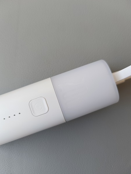 頂部自帶Type-C線材和一個Type-C固定口。線材可插入固定在Type-C接口里,作為提手使用。插入后固定牢靠,可手提或固定在包包上,攜帶方便,美觀時尚又大方。底部同樣設(shè)計了一個Type-C的充電口。可同時為手機、平板等2臺設(shè)備充電。充電頭、充電寶、自帶線,三合一設(shè)計讓筆者外出不再懼怕忘記帶數(shù)據(jù)線、充電頭的煩惱。