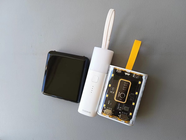 這款快充充電頭+充電寶+自帶線的移動電源,倍思給它起名叫倍思能量堆Air氮化鎵移動電源。