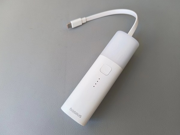 倍思能量堆Air氮化鎵移動電源為立柱造型,三圍為35mm*35mm*119.3mm,重量為174.4g。筆者將其和之前的兩款自帶線充電寶(一萬毫安)相比,體積上可謂縮小近一半,放包包里不會占據(jù)太多空間。重量略輕。考慮到倍思能量堆Air氮化鎵移動電源的重量是有充電頭在內(nèi)的,所以重量上也是完勝的。