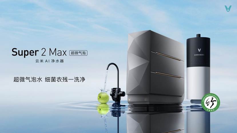 為了帶來更好的用戶體驗,云米還推出了更高端的Super 2 Max 超微氣泡AI凈水器,以超微氣泡水除菌去農殘,打造母嬰直飲鮮活水。采用瞬時超微泡技術,將水和空氣充分混合進行釋放,在1mL水中可產生上萬個20~50微米氣泡,帶來強大清潔力,細菌農殘一洗凈,農殘去除率>95.1%,油脂去除提升率+205%。