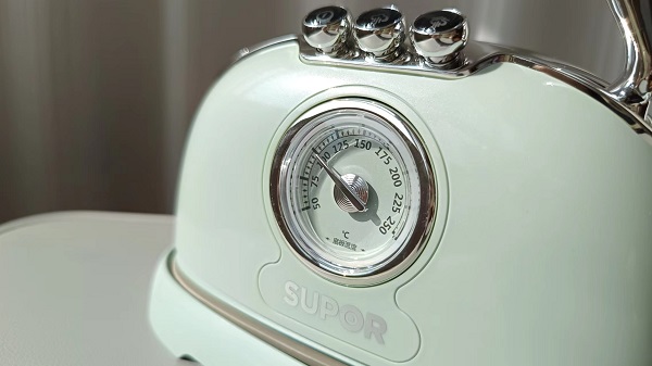 值得一提的是蘇泊爾919B有個(gè)復(fù)古溫度表盤(pán),可實(shí)時(shí)顯示溫度。開(kāi)始筆者覺(jué)得這個(gè)設(shè)計(jì)有點(diǎn)過(guò)于講究了,但實(shí)際使用中發(fā)現(xiàn)有了溫度顯示,能知道預(yù)熱溫度,更快決定是否可以熨燙,注意不會(huì)被燙傷,還可知道底板溫度,方便掌握收納時(shí)間。