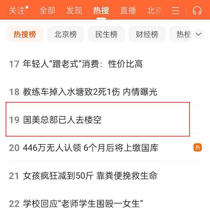 “國(guó)美總部已人去樓空”沖上百度熱搜