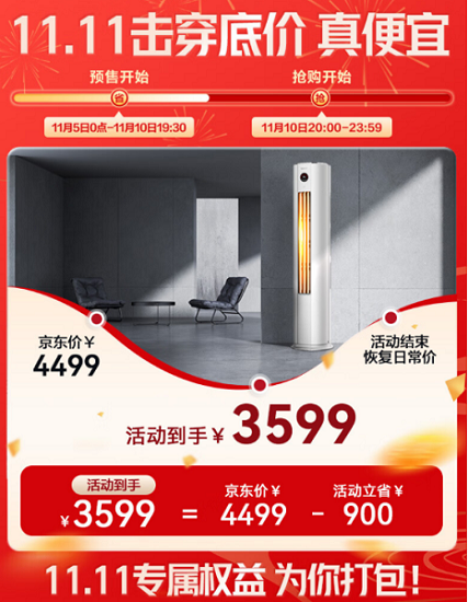 今天晚上8點(diǎn),一直售價(jià)在4499元的長虹熊貓懶Ⅱ代大3匹柜機(jī)到手價(jià)僅3599元。有購買空調(diào)的小伙伴一定不要錯(cuò)過機(jī)會(huì)了。(杜佳)