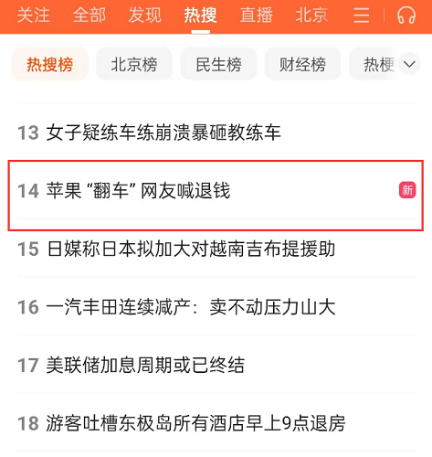 蘋果“翻車”網友喊退錢沖上百度熱搜 網友:蘋果的時代過去了