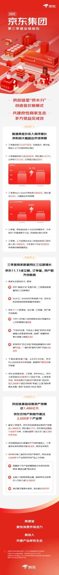 “三季度,我們取得了穩健的收入表現,并且利潤水平達到歷史新高,這主要得益于我們在價格競爭力和平臺生態建設方面的主動努力及供應鏈優勢,”對此,京東集團首席執行官許冉表示,“我們備受鼓舞地看到一系列主動努力所取得的進展,比如商家數量的進一步擴大,以及用戶購買行為的改善等。憑借我們為用戶和業務合作伙伴創造價值的明確策略,以及著眼未來所進一步優化的價值主張,我相信京東處于實現長期可持續增長的有利位置。”