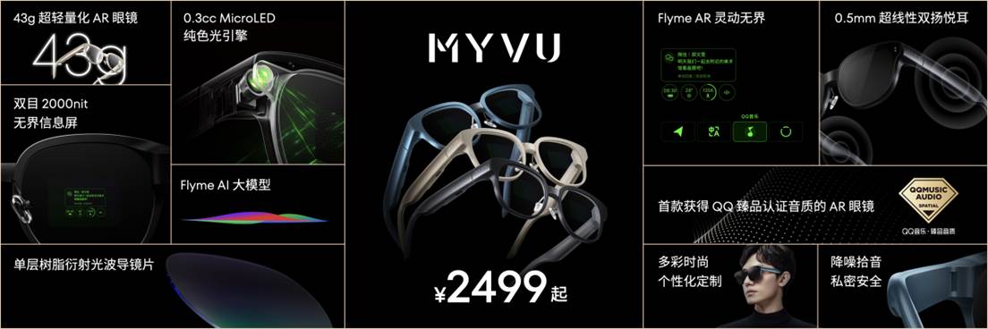 魅族發布AR智能眼鏡品牌MYVU 發布兩款全天候時尚AR智能眼鏡新品