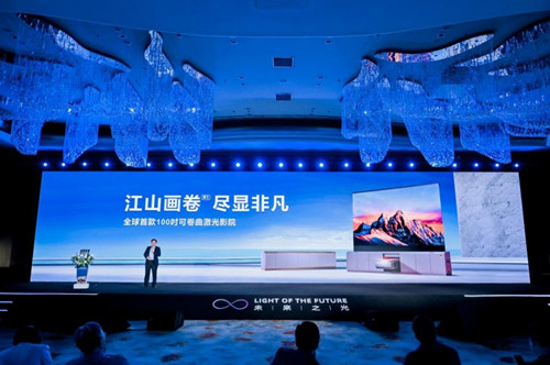 想要引領(lǐng)顯示行業(yè),就必須不斷實現(xiàn)技術(shù)突破。在大會現(xiàn)場,海信發(fā)布全球首款150英寸屏幕發(fā)聲激光電視探索X1 Ultra、全球首款100英寸可卷曲激光影院江山畫卷R1及電影發(fā)燒友最期待的投影Vidda C5無界,引領(lǐng)行業(yè)進(jìn)入“無界顯示”新紀(jì)元。