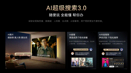 在智能體驗方面,追光100Q10Air內(nèi)置國家備案AI大模型,持續(xù)進化,幫你更懂你。全新升級的AI超級搜索3.0,支持角色搜、劇情搜、人物搜、臺詞搜,甚至創(chuàng)新推出AI續(xù)看模式,無論是突然想起某句臺詞,還是想繼續(xù)上一段未盡的劇情,皆能輕松實現(xiàn)。