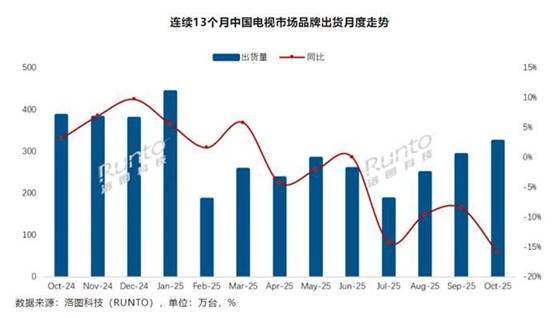 事實(shí)上,這一局面早有跡可循。根據(jù)洛圖科技9月份數(shù)據(jù),中國電視市場出貨量292萬臺,同比下滑8.5%,但海信、TCL、創(chuàng)維三家卻拿走了181萬臺,占比62%,同比僅微降0.5%;而中小品牌(長虹、海爾、康佳)出貨44萬臺,同比大跌14%。最新發(fā)布的10月數(shù)據(jù),依然維持這一格局,盡管雙11對中小品牌出貨量有一定刺激,但微乎其微,長虹、海爾、康佳等其他主要品牌合計(jì)出貨量僅為50萬臺,同比下降9.8%,三者總和不及小米一家。