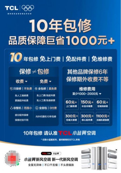 TCL空調的服務政策同樣體現對品質的自信。凡是購買TCL小藍翼系列空調、風管機及小多聯等產品的用戶,均可享受整機10年包修服務。這一舉措不僅遠超行業平均水平,更源于TCL空調對產品可靠性的極致追求。
