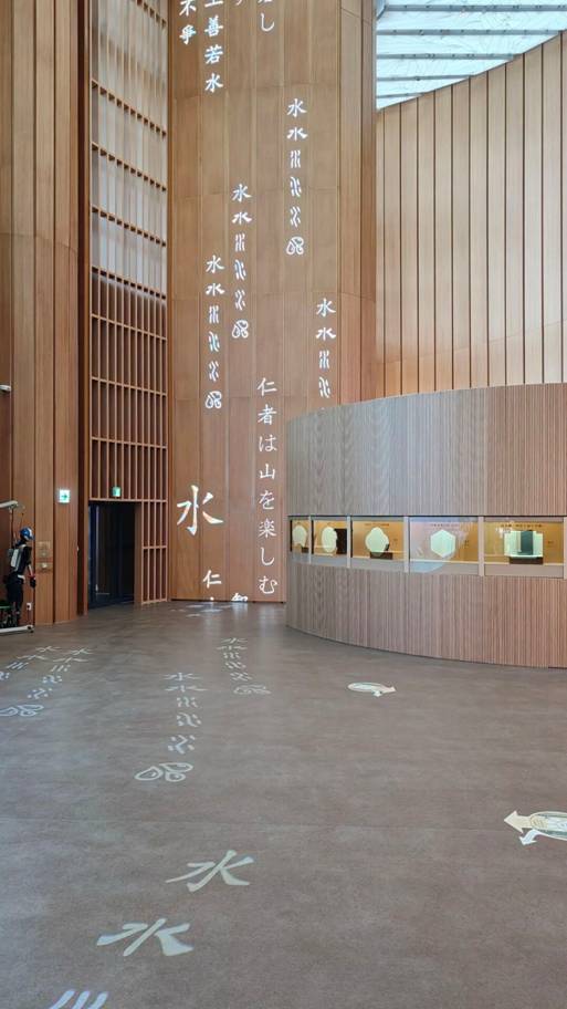 文字長河展項:面對13米高空投射與頂部透光的嚴苛環境,光影將詩詞化作 “文字長河”,從展館穹頂流淌至地面,呈現文化流傳演變脈絡。