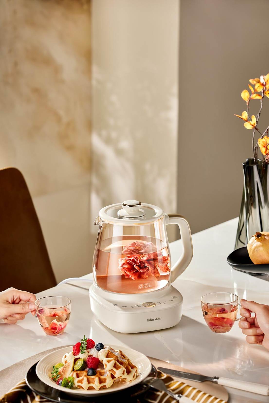 早晨到工位后放入幾片黃芪枸杞,按下開關,整理郵件的時間,茶香已裊裊升起;午后小憩前燉份冰糖雪梨,睡醒后溫度恰好,滋潤又提神。更貼心的是,它還搭載了NTC水溫水位雙檢測系統(tǒng),不僅能防止沸騰溢出,還能精準控溫鎖住營養(yǎng),更好地釋放食材風味。
