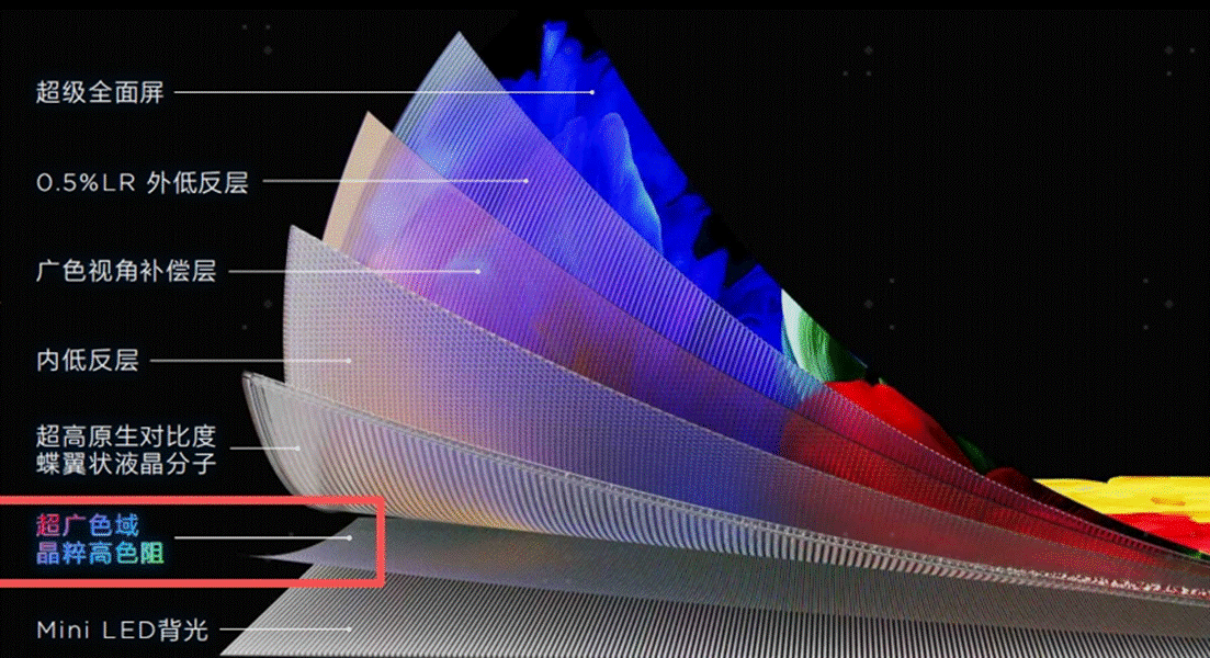 從技術本質來看,SQD-Mini LED仍是原有傳統液晶顯示技術框架內的升級,是高色域高能耗的傳統解決方案,而RGB-Mini LED則是一次改寫電視光色底層基因的跨代革命,是可以實現高畫質低能耗的最先進的高端液晶顯示技術。100% BT.2020的色域面積是QD-Mini LED的終點,但只是RGB-Mini LED的起點。
