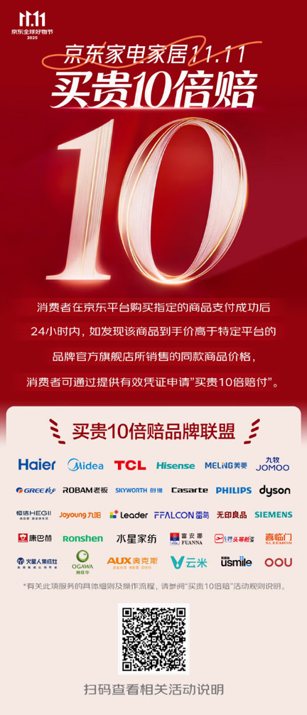 為了更好滿足消費者的需求,10月14日,京東針對家電家居領域發布了“買貴10倍賠”活動,覆蓋海爾、海信、美的、TCL、格力、小米等一眾知名家電家居頭部品牌。致力于為用戶打造一個“真低價、無套路”的省心購物體驗,讓每一位消費者都能輕松選購“又好又便宜”的家電家居產品。打開京東APP,搜索“買貴10倍賠”,即可參與活動,一鍵解鎖更多低價家電家居好物。