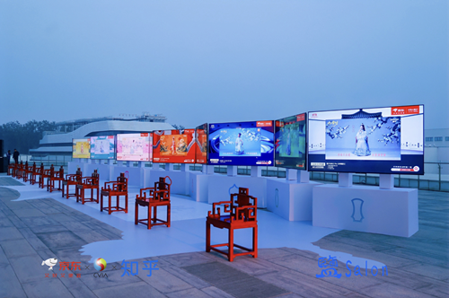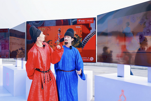 科技的發展,讓百吋電視成為喚醒經典的新載體。本次沙龍活動現場,京東取意于“金陵十二釵”,以“十二金吋”作為靈感源點,將TCL、海信、小米、創維、三星、雷鳥、Vidda、酷開等品牌的百吋電視共同組成“十二金吋”陣列,投放“金陵十二釵”經典藝術形象,以光影為筆,描繪東方之美。同時,這十二臺百吋電視所構建的沉浸式巨幕裝置,也形成了一幅流動的“現代畫卷”。