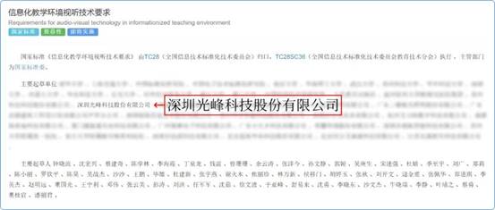《信息化教學環境視聽技術要求》正式實施,光峰科技參與核心起草