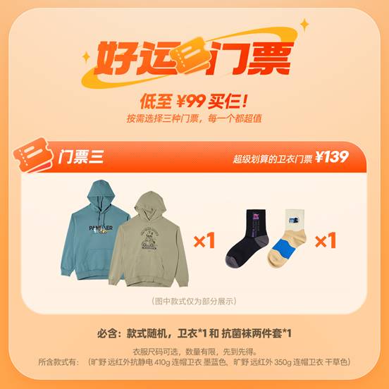 應季暖心撿漏套餐:覺得短袖穿不到的、手機殼型號匹配不上的用戶,還有衛衣可選。衛衣原價分別 299 元和 329 元。現降至 139 元買 1 件衛衣,2 雙抗菌襪。