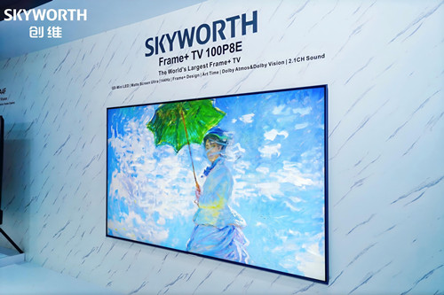 展區的核心位置,由Mini LED、OLED、壁紙電視等組成的高端顯示矩陣,生動詮釋了“技術創維”的底色。其中,針對海外高端家庭影院市場推出的百吋Mini LED壁紙電視100P8E,以其影院級的沉浸觀感吸引了眾多目光;而136吋的Micro LED,作為創維首臺AI智能體多場景LED超級電視,展現了創維在專業細分領域的尖端技術儲備。