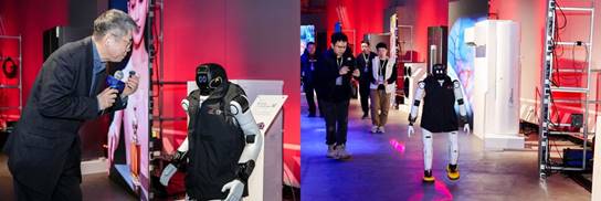 紅頂獎(jiǎng)藝術(shù)展策展人、浮云藝術(shù)創(chuàng)始合伙人CEO方明與機(jī)器人智源靈犀X2,一同對(duì)藝術(shù)大展進(jìn)行導(dǎo)覽