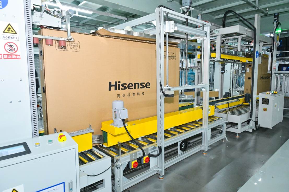 海信視像在智能制造領域,凸顯了機器人應用技術上的創新優勢。公司首創性地將輕型六軸關節式協作機器人應用于電視反射片自動回壓等精密操作工序,通過這項技術的應用,推動產線自動化率從 30% 提升至71%,打造出以機器人技術為核心驅動的數字化高效標桿線體。