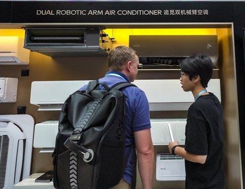 海外市場負責人同客商洽談雙機械臂空調等產品