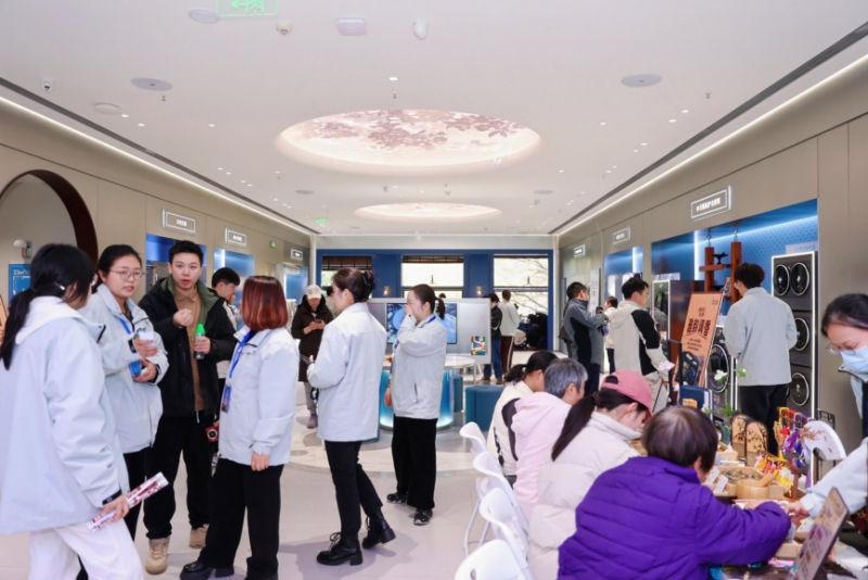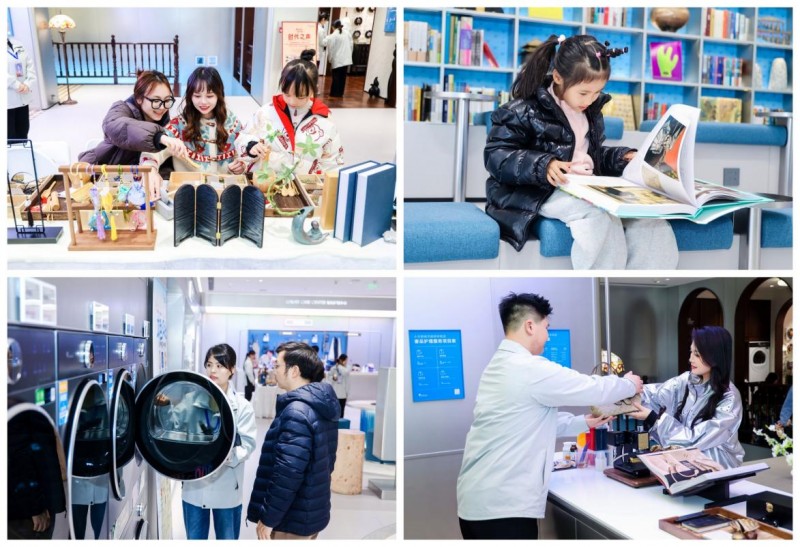 這主要體現在鵝店的運維上。武漢鵝店將傳統家電售賣空間,升級為了多元化、開放型的城市會客廳,這里集全品類家電展示、家庭洗護服務、咖啡茶飲、親子娛樂、文化打卡、圈層交流等于一體,賦予了空間更多的功能與用戶價值。