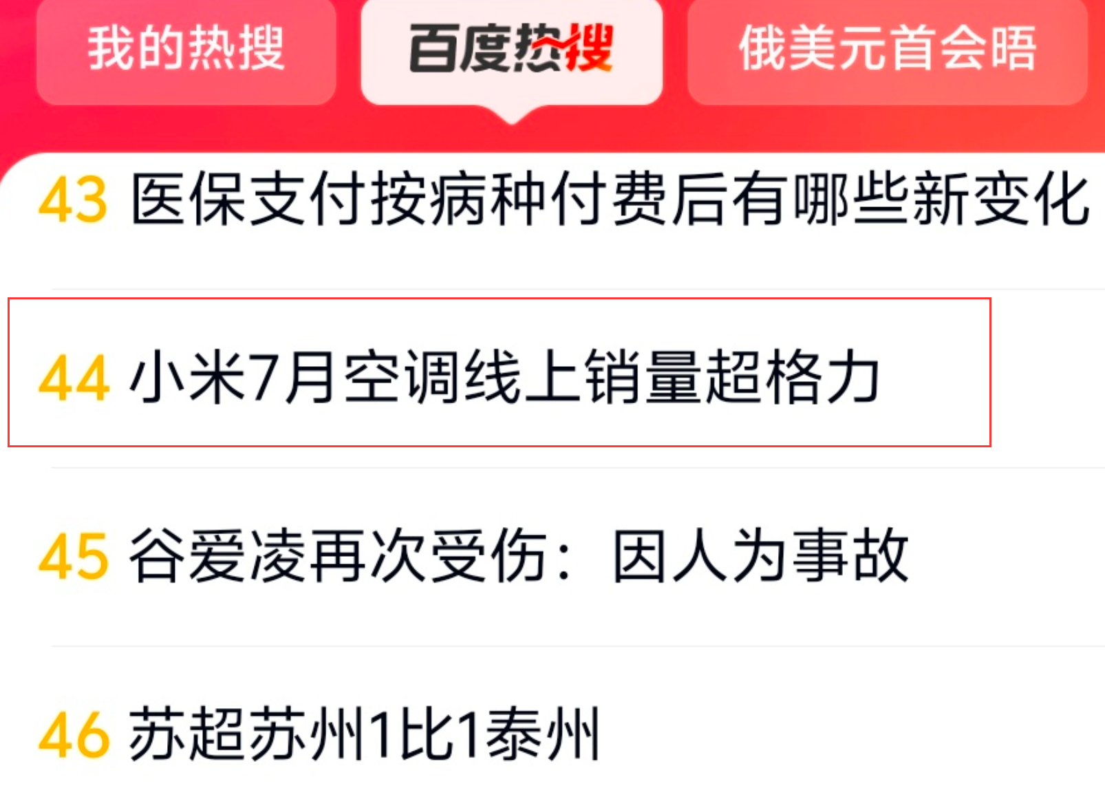 “小米7月空調線上銷量超格力”沖上百度熱搜
