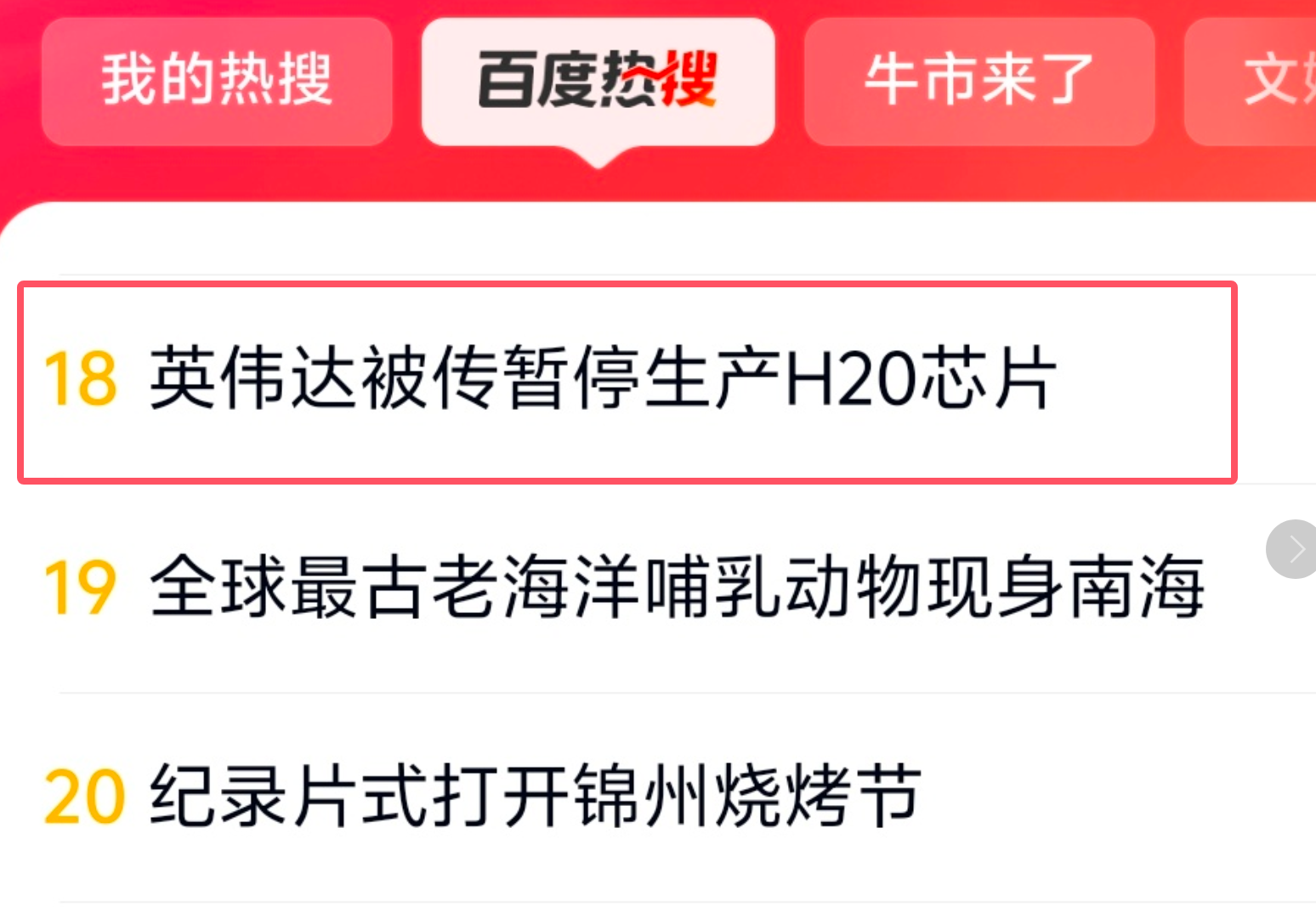 “英偉達被傳暫停生產H20生產”沖上百度熱搜