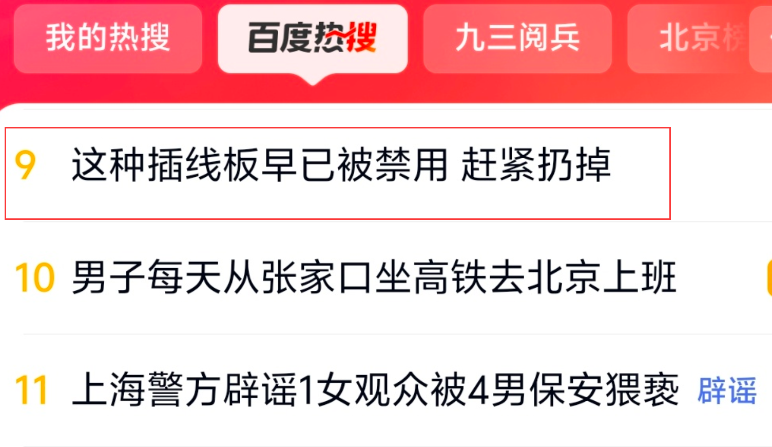 “這種插線板早已被禁用 趕緊扔掉”沖上百度熱搜
