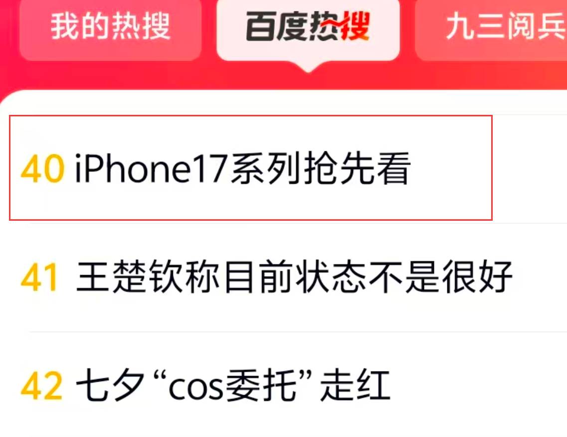 家電消費網8月29日訊 今天,“iPhone17系列搶先看”沖上百度熱搜。