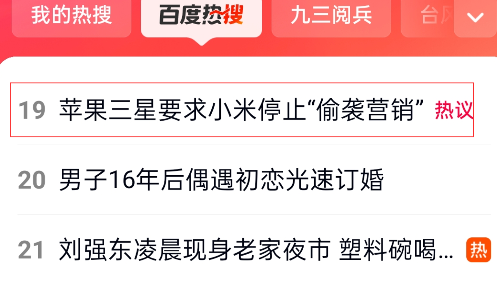 “蘋果三星要求小米停止‘偷襲營銷’”沖上百度熱搜