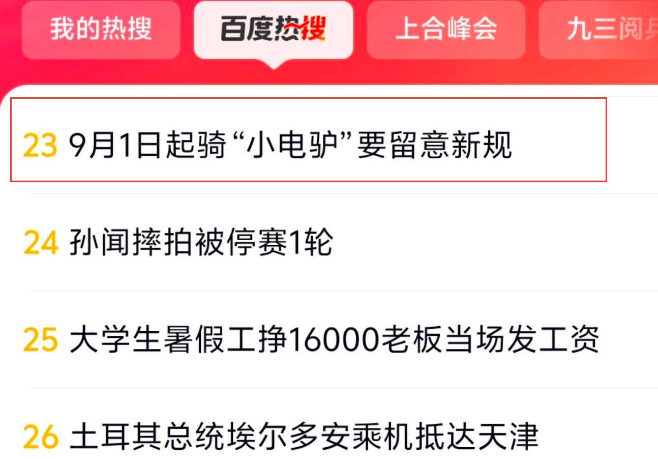 “9月1日起騎‘小電爐’要留意新規”沖上百度熱搜
