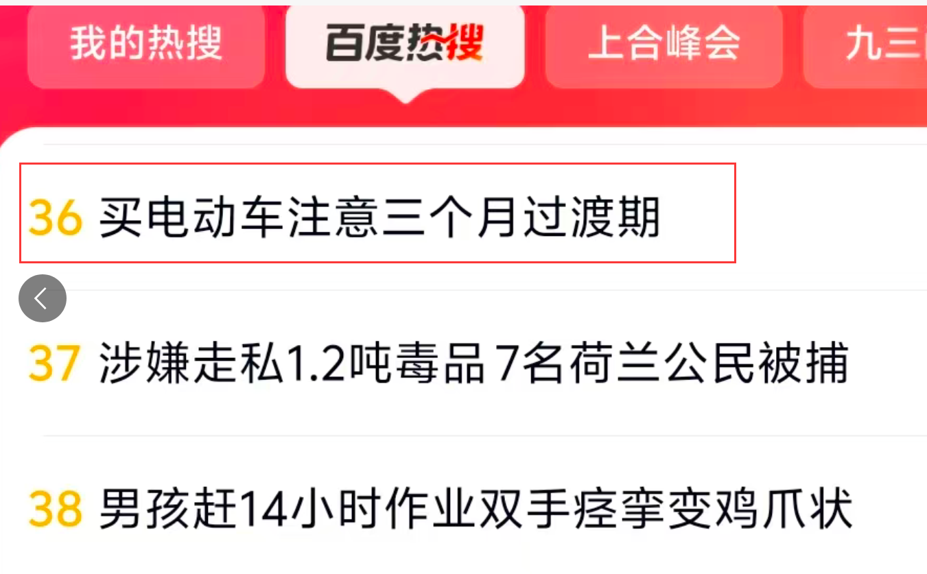 “買電動車注意三個月過渡期”沖上百度熱搜