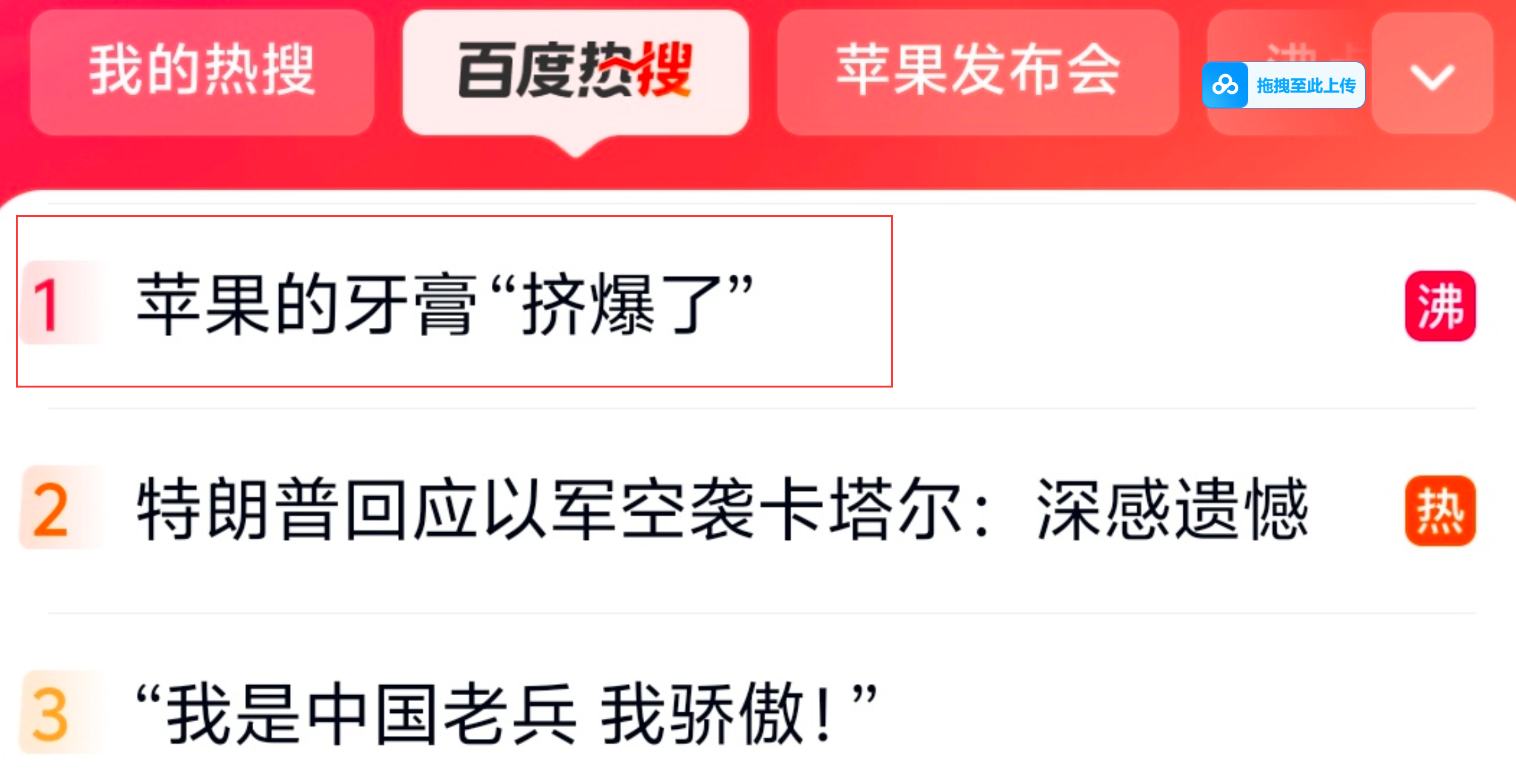- “蘋果的牙膏‘?dāng)D爆了’”沖上百度熱搜第一條