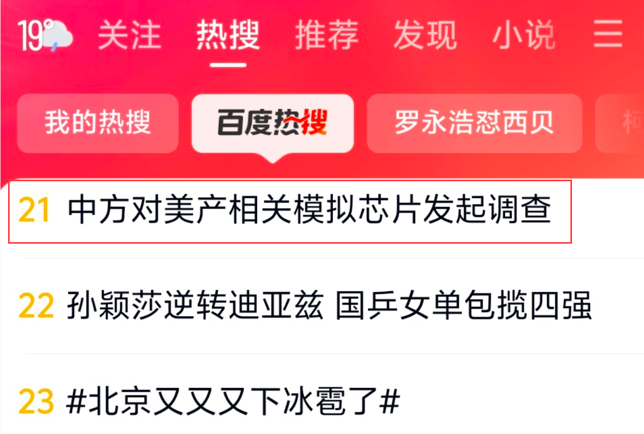- “中方對美產(chǎn)相關(guān)模擬芯片發(fā)起調(diào)查”沖上百度熱搜