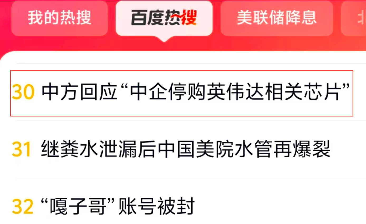 - “中方回應(yīng)‘中企停購英偉達(dá)相關(guān)芯片’”沖上百度