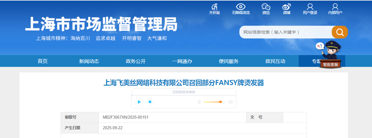 家電消費(fèi)網(wǎng)9月25日訊 昨天,上海飛美絲網(wǎng)絡(luò)科技有限公司召回500件FANSY牌燙發(fā)器。