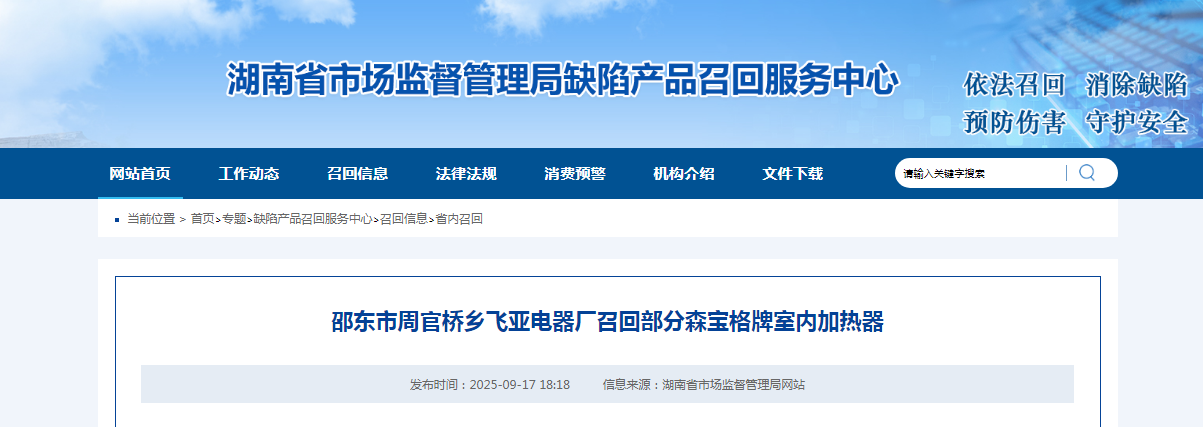 導(dǎo)讀: 家電消費(fèi)網(wǎng)9月25日訊 昨天,湖南省飛亞電器廠按照《消費(fèi)品召回管理暫行規(guī)定》的要求,主動(dòng)向湖南省市場(chǎng)監(jiān)督管理局報(bào)告了召回計(jì)劃,將自即日起,召回2024年10月1日至10月30日期間制造的森寶格牌室內(nèi)加熱...