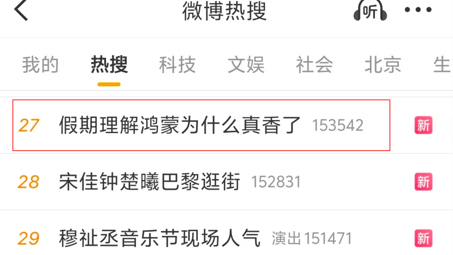 “假期理解鴻蒙為什么真香了”沖上微博熱搜