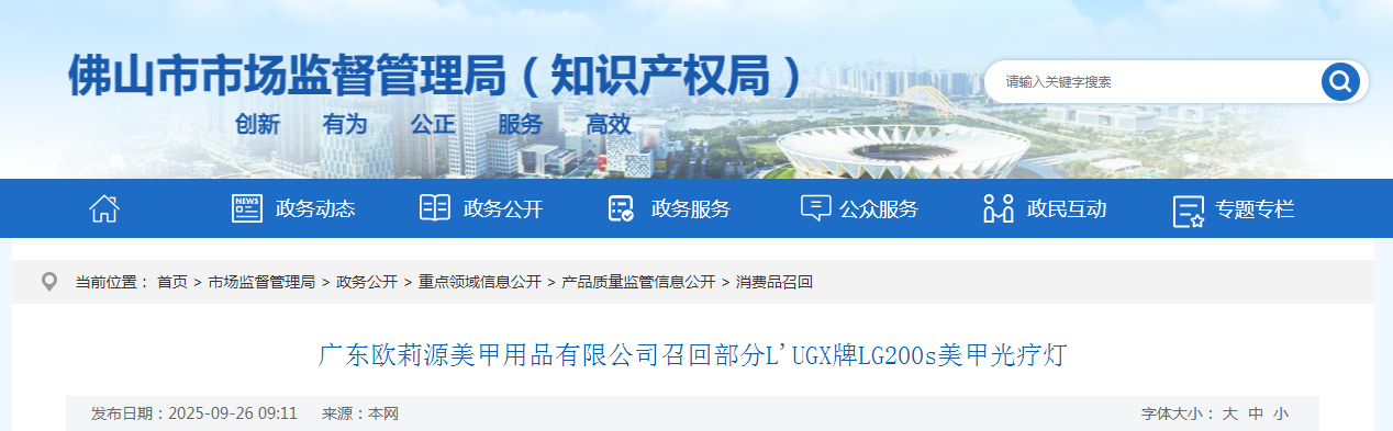 導讀: 家電消費網10月5日訊 昨天,廣東歐莉源美甲用品有限公司召回按照《消費品召回管理暫行規定》的要求,主動向佛山市市場監督管理局報告了召回計劃,將自即日起,召回2024年1月5日至2024年7月30日期間制造的部...