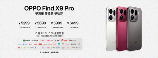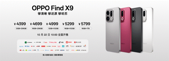 Find X9系列4399元起售,10月22日正式開售;Find X9 Pro衛星通信版11月開售,并將率先支持eSIM。OPPO與哈蘇聯合打造的哈蘇專業影像套裝售價1699元。(溫麗雅)