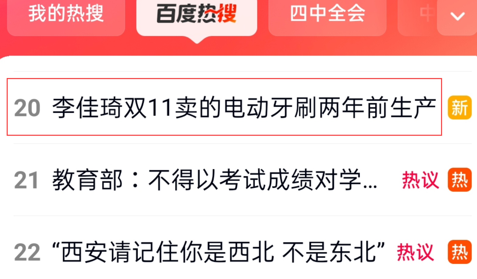 - “李佳琦雙11賣(mài)的電動(dòng)牙刷兩年前生產(chǎn)”沖上百度熱