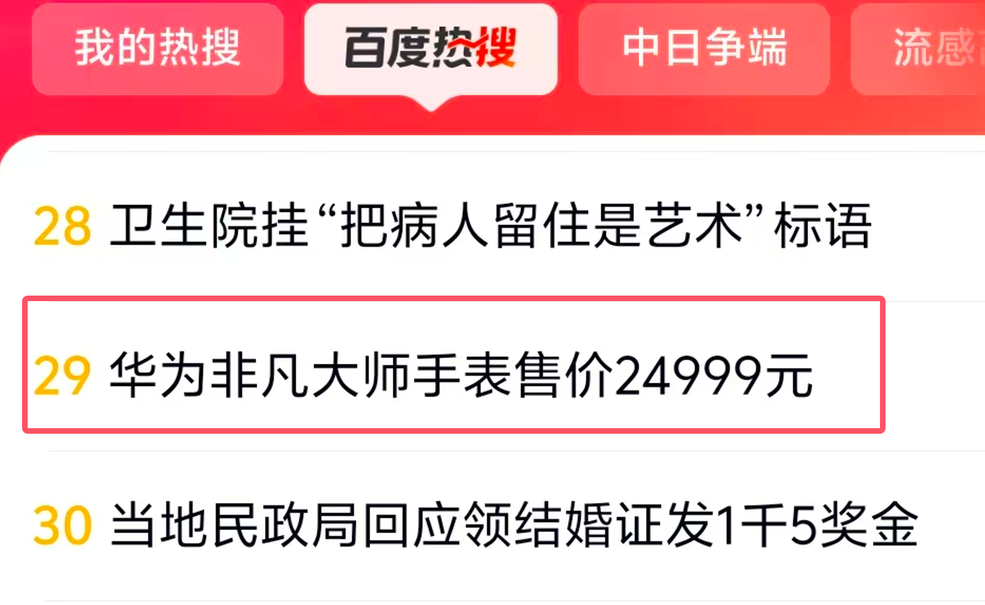 “華為非凡大師手表售價24999元”沖上百度熱搜