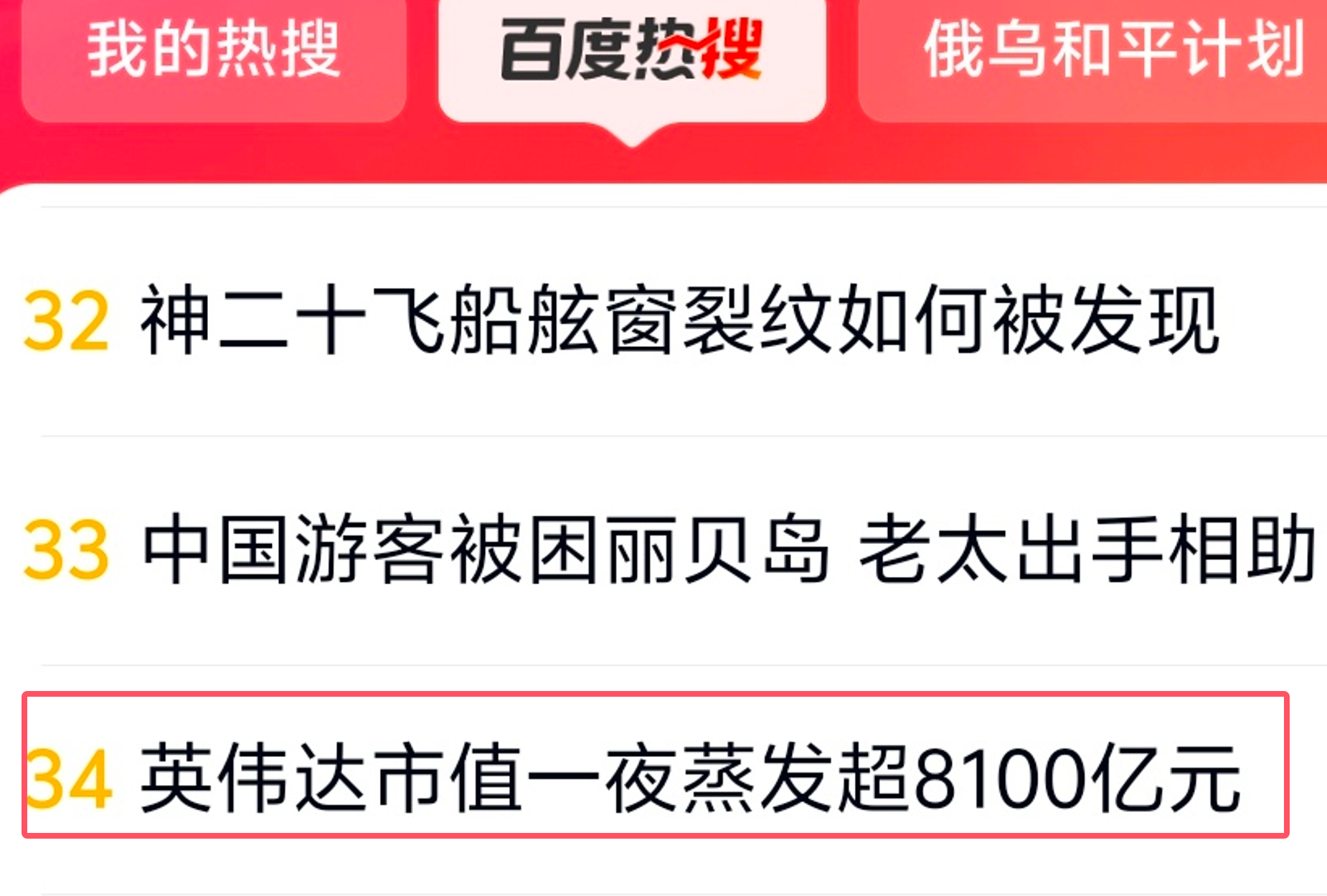 “英偉達(dá)市值一夜蒸發(fā)超8100億元”沖上百度熱搜