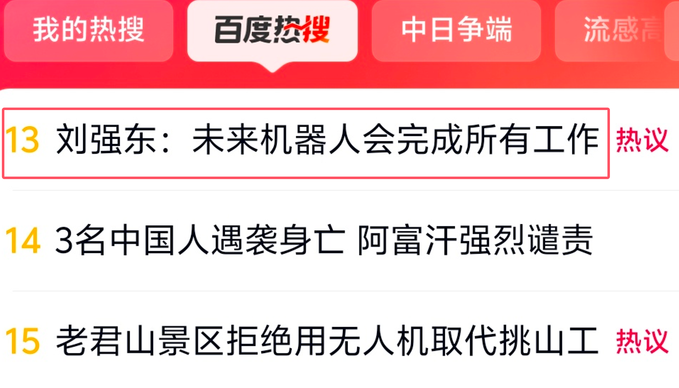 “劉強東:未來機器人會完成所有工作”沖上百度熱搜