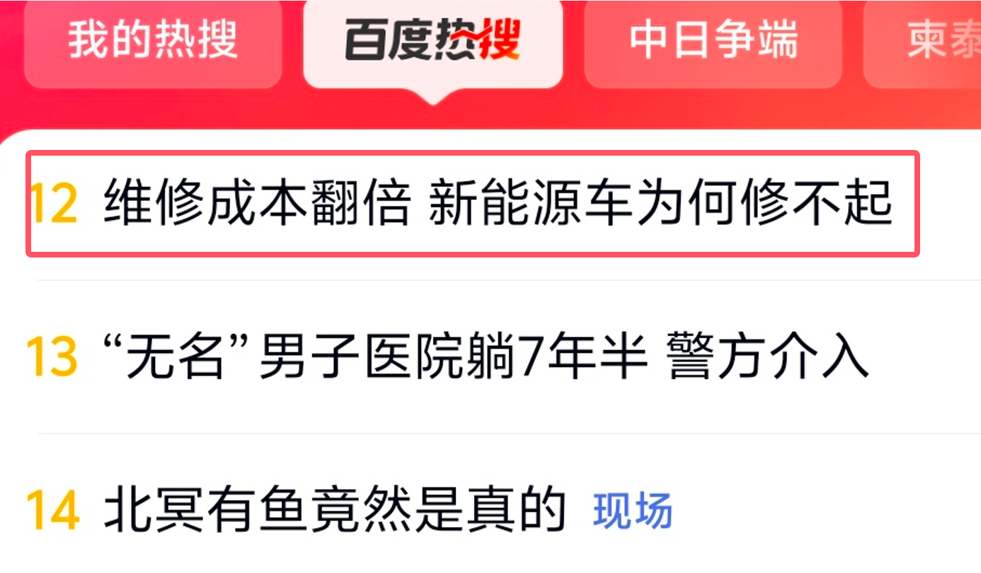 “維修成本翻倍 新能源車為何修不起 ”沖上百度熱搜